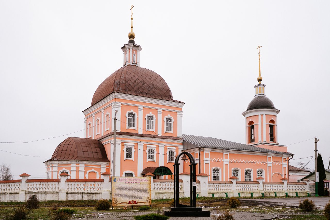 Памятный знак у церкви установили в преддверии празднования 77-й годовщины Великой Победы. Сегодня здесь не только можно поклониться подвигу наших дедов и прадедов, но и прочитать информацию о том самом первом бое за город 24 ноября 1941 года, а также о подвиге местных жительниц Татьяны Пугиной и Александры Турченевой, которые, рискуя собственной жизнью, укрывали в домах раненых красноармейцев.