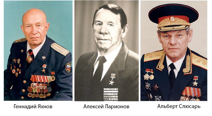 Остановимся лишь в одной точке Аллеи почетных захоронений, где рядом друг с другом расположились могилы трех Героев Советского Союза: Геннадия Михайловича Яхнова, Алексея Алексеевича Ларионова участие и Альберта Евдокимовича Слюсаря.