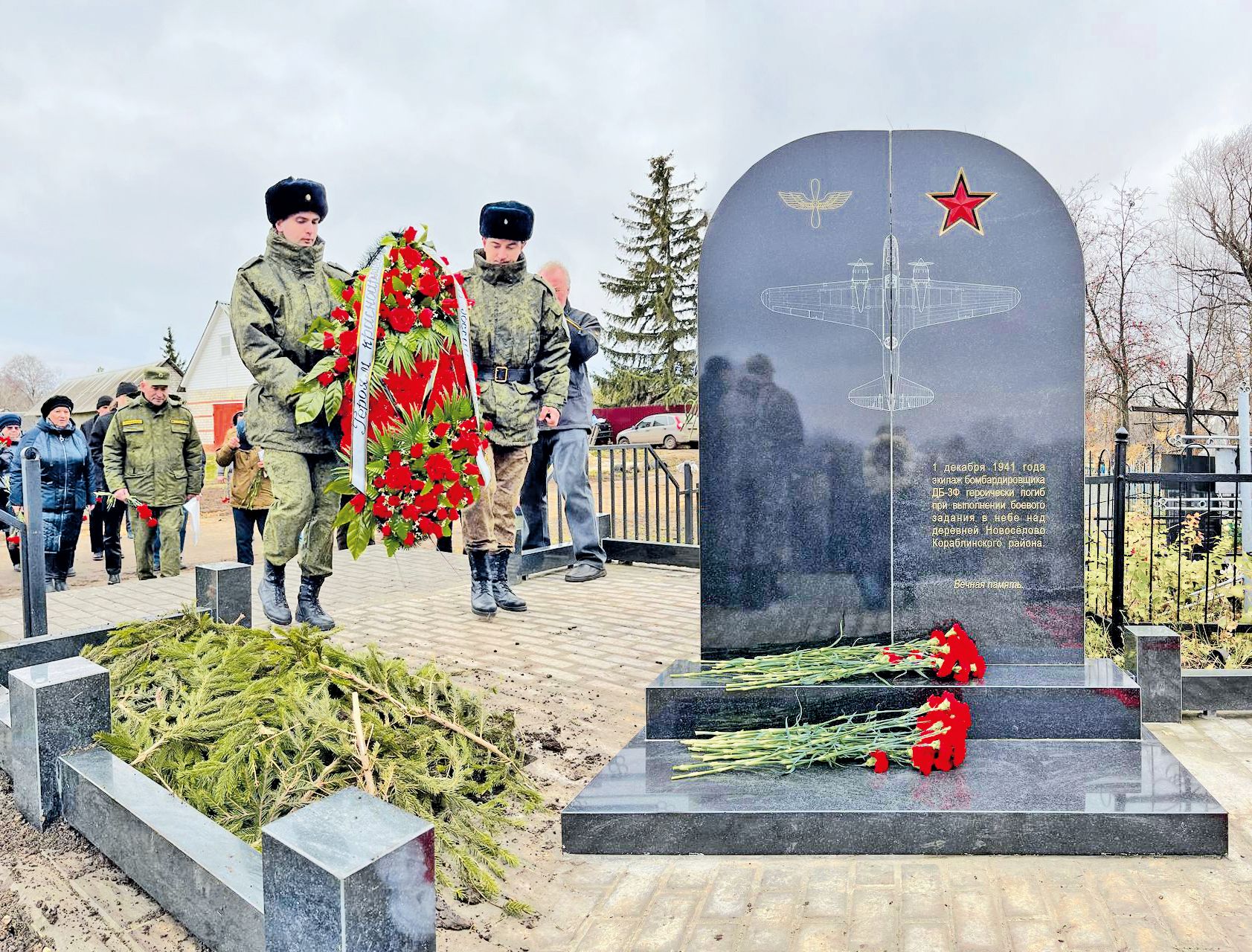 В братской могиле на кораблинском кладбище захоронены останки пяти человек: четырех членов экипажа бомбардировщика ДБ-3Ф и одного красноармейца.