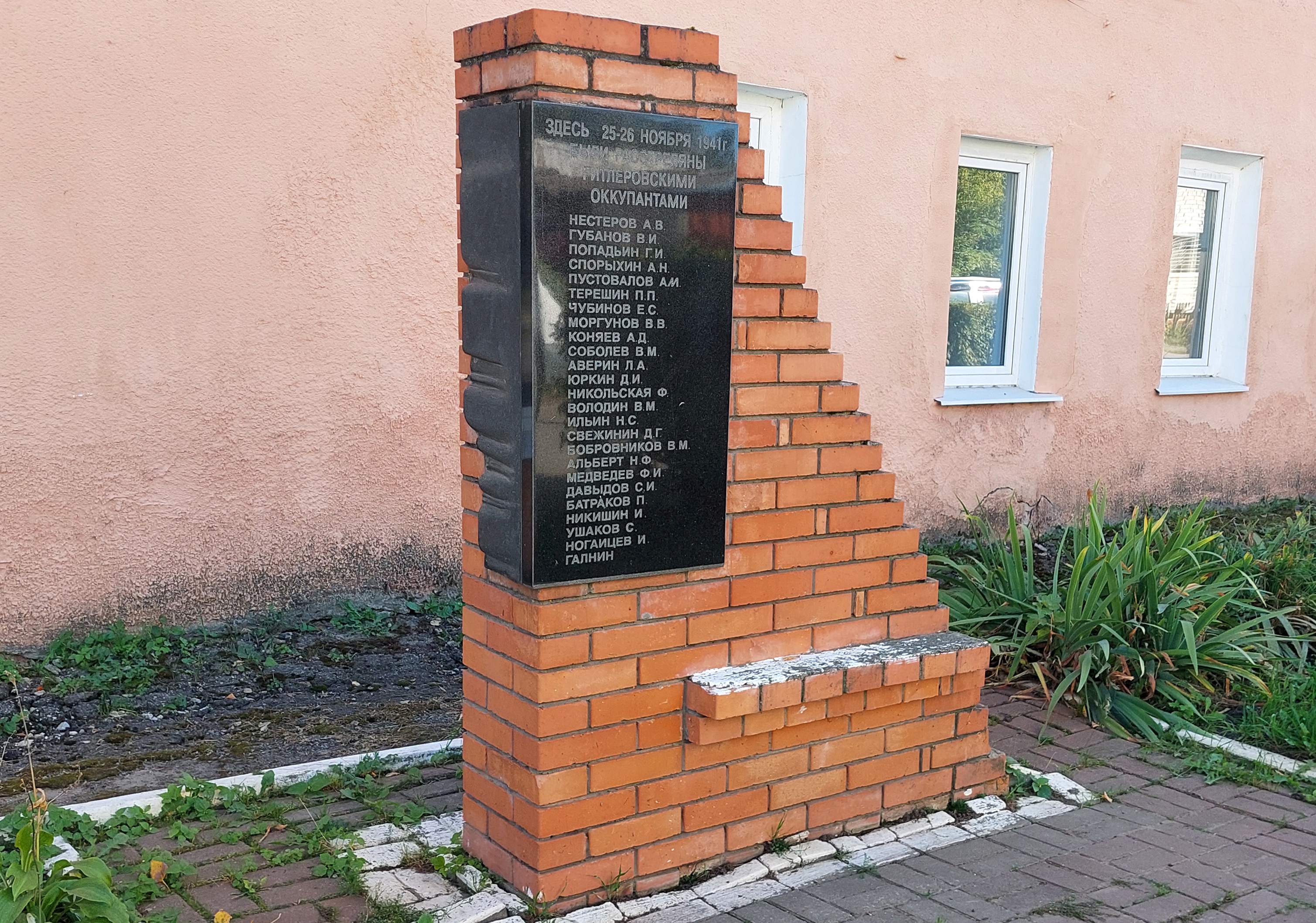 25 ноября 1941 года немецко-фашистские захватчики ворвались в Скопин. В этот же день без всяких объяснений они расстреляли 26 человек: 13 местных жителей, включая тринадцатилетнюю Фаину Никольскую, а также 11 проходивших через район трактористов и бригадиров из Тульской области и двое так и неопознанных мужчин.