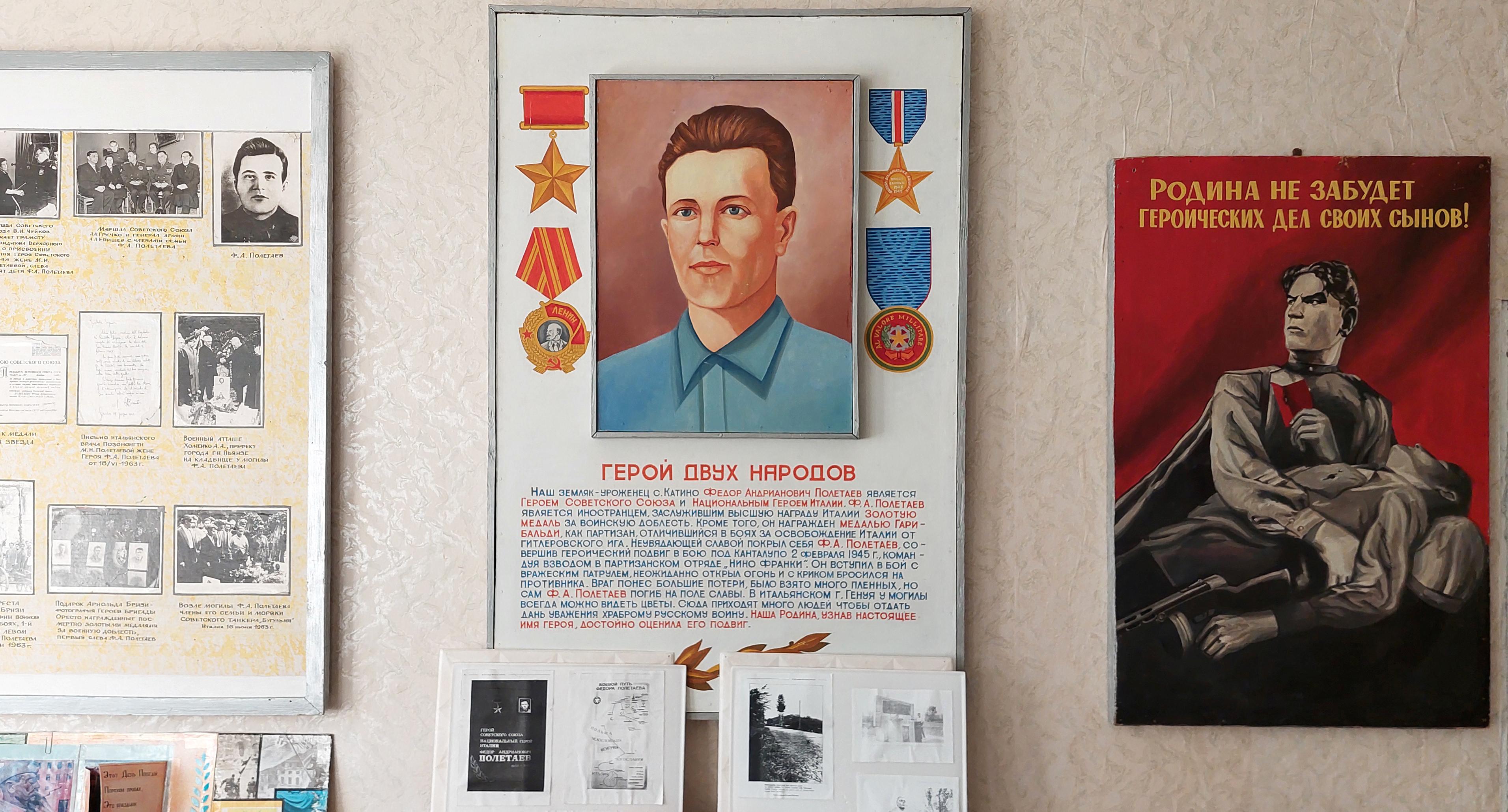 В 1868 году в селе Катино Скопинского уезда на месте старой деревянной церкви возвели новую каменную в честь Святой Живоначальной Троицы с приделом во имя святителя Николая Чудотворца. В этом храме в 1909 году был крещен Федор Полетав – именно так первоначально звучала фамилия будущего героя двух стран. А вот в похозяйственных книгах производственных показателей хозяйств колхозников Катинского сельского Совета за 1947 год фамилия имеет привычное для нас написание: «Полетаев».