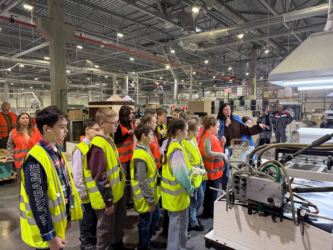 Компания «Графика» производит тетради, дневники, блокноты и альбомы для рисования — всё, что так знакомо школьникам. Ребята прошли полный и увлекательный путь рождения обычного дневника — от огромного бумажного рулона до готового изделия в фирменной обложке. Они стали свидетелями того, как чистейшая бумага превращается под гул современных станков в аккуратные тетрадные блоки, как яркие обложки обретают глянец на ламинаторе, а затем все детали собираются в единое целое. Это был настоящий урок технологии в действии!