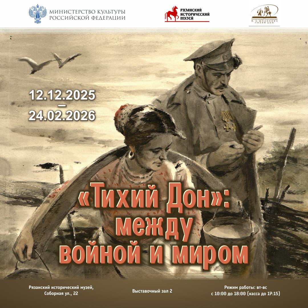 12 декабря в 16:00 в Рязанском историко-архитектурном музее-заповеднике откроется выставка, приуроченная к 120-летию со дня рождения Михаила Александровича Шолохова и 100-летию начала его работы над гениальным литературным произведением «Тихий Дон».
